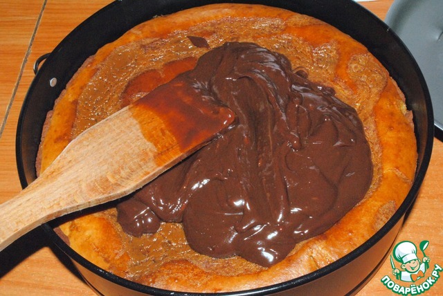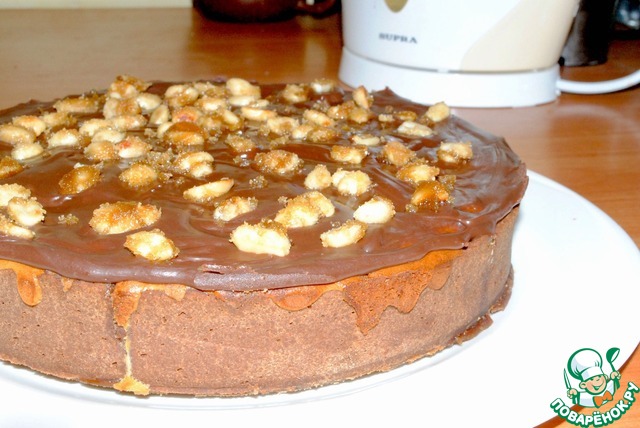 Дно подостывшего коржа смазываем карамельным соусом – он выполнит роль тянучки, как в "Сникерсе". Если ее запечь отдельно, получатся ириски!