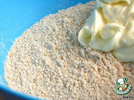 Печенье измельчите в крошку. Смешайте с маслом.