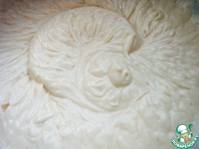Взбить рикотту на низкой скорости в течении двух минут, добавить 200 г. сахара и муку. Взбить на средней скорости до получения однородной массы (около 2 минут), очищая венчики по мере необходимости.
