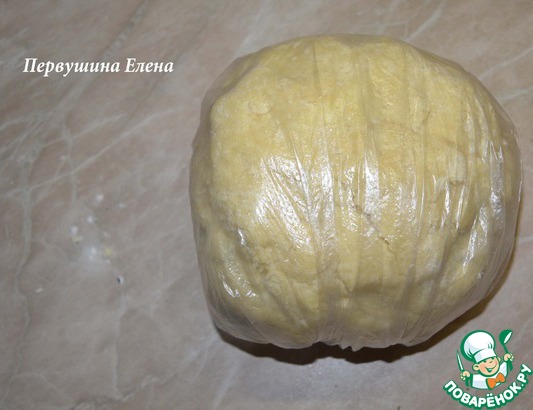 Замесить руками и скатать в шар. Положить тесто в пакет или пищевую пленку и убрать в морозилку минут на 10.