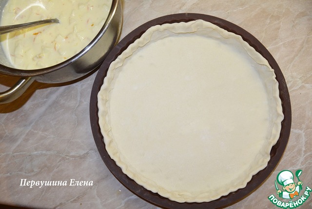 Присыпать стол мукой и раскатать тесто до толщины примерно 3-4 мм. Смазать форму маслом и присыпать мукой. Аккуратно положить будущую основу для чизкейка в форму и прижать по всей поверхности. Сделать бортики.