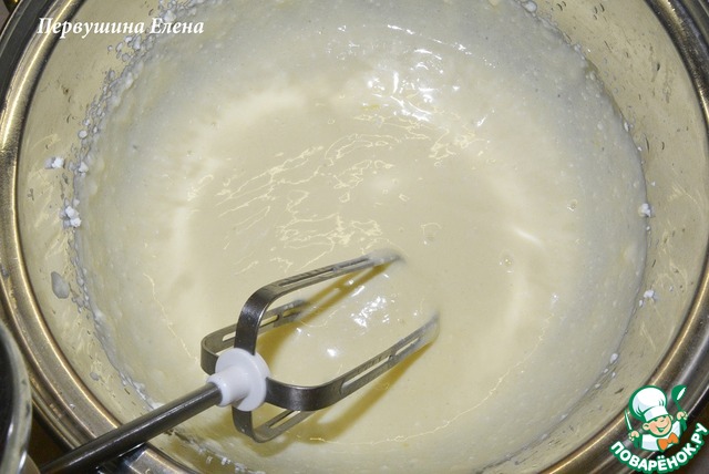 Смешать яйца, сахар, творог и растереть до однородной консистенции.