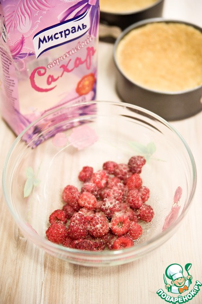 Сверху выложить малиновый слой. Формы поместить в глубокий противень. В противень налить горячую воду и поместить в разогретую до 180 °С духовку. Выпекать около 30 минут.