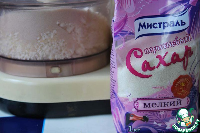 Для приготовления чизкейка берём сахар коричневый мелкий от "Мистраль", он наиболее подходит для этого рецепта по своим качествам.