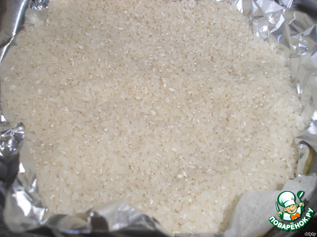 По истечении этого времени, накройте корж бумагой или фольгой, сверху насыпьте рис или горох и поставьте в духовку на 10 минут. Достаньте, уберите груз и запекайте еще минут 10 или до золотистого цвета.