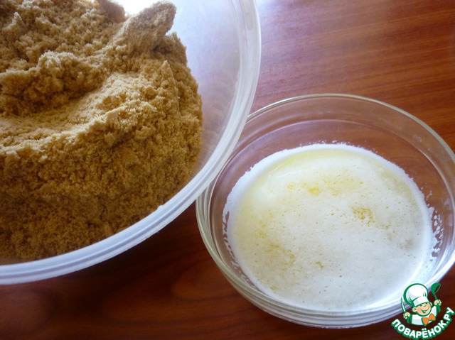 Блендером печенье измельчить в крошку. Соединить с растопленным сливочным маслом. Чашу мультиварки смазать сливочным маслом, выложить крошку и хорошо утрамбовать ее.