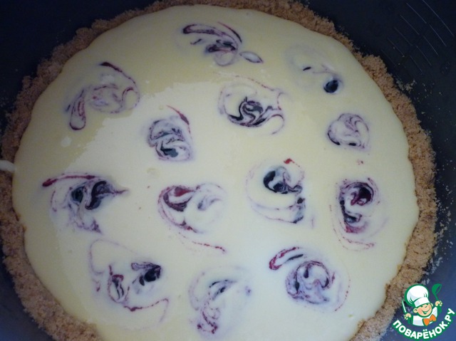 Выложить чизкейк, помогая чашей для пароварки. Охладить.