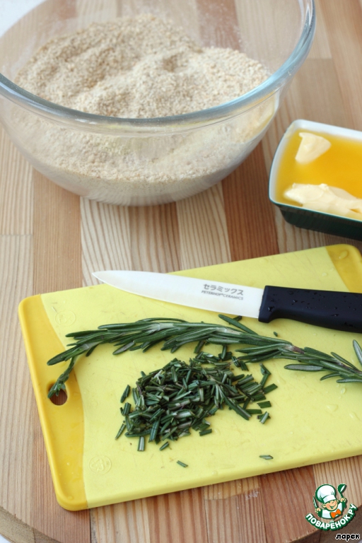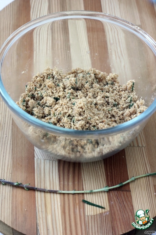 Смешать масло и розмарин с крошкой.