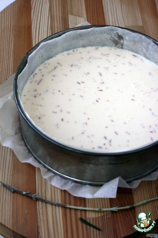 Дно разъемной(!) формы застелить пергаментом, стенки также желательно проложить пергаментом или жирно смазать сл.маслом. Это делается для того, чтобы начинка при запекании не "полезла" вверх и не потрескалась по краям, пытаясь "отлепиться" от стенок формы при остывании. От пергамента сливочный слой отходит легко и после освобождения от формы выглядит аккуратно.