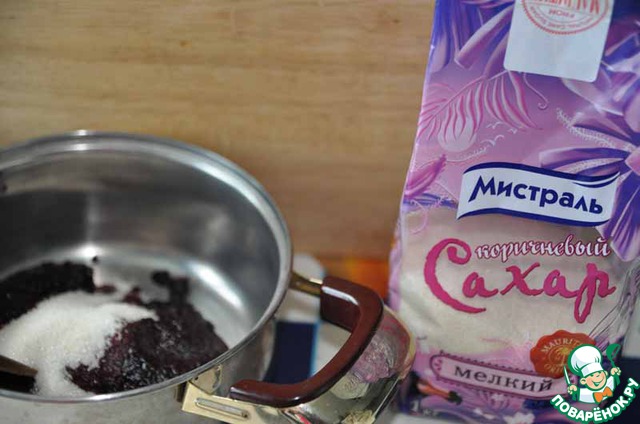 Берём жимолость, насыпаем в кастрюльку, засыпаем сахаром коричневым мелким от "Мистраль".