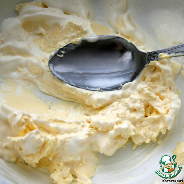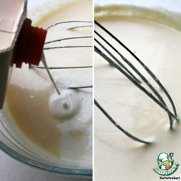 На этом этапе ложку лучше заменить венчиком - масса получается более однородной. В игру вступает последний компонент - сливки. У меня обычные, так называемые нежирные, питьевые. Получается ароматная однородная крем-масса. Отставляем в сторону...