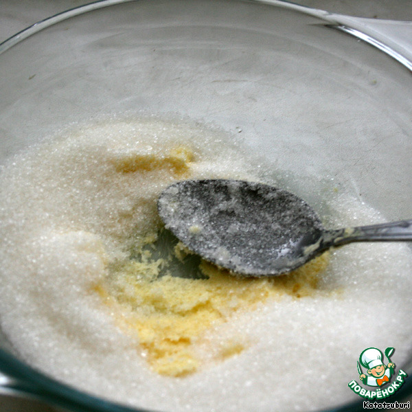 добавляем просеянную муку и соду (чайную ложку без горки), погашенную уксусом. Соду погасить обязательно, чтоб не осталось непогашенных крупинок, иначе будет неприятный привкус.