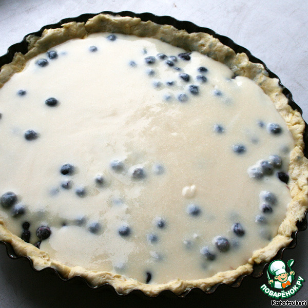 ..для того, чтобы обвалять тут же предварительно помытую и обсушенную чернику. Я просто беру форму и слегка встряхиваю, чтобы мука равномерно распределилась по ягодам - это наименее травмирующий для них вид "обвалки" мукой. Равномерно распределяем ягоды по поверхности.