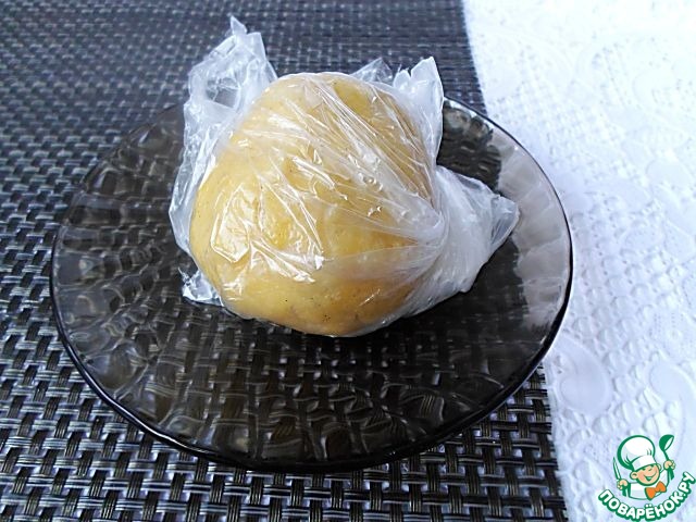Скатываем тесто в шар, оборачиваем пищевой пленкой или пакетом, убираем на 1 час в холодильник.