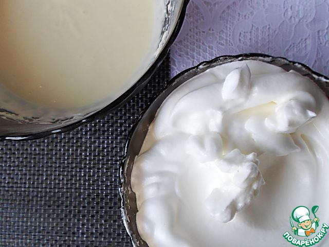 Белки взбиваем до крепкой пены, затем небольшими порциями начинаем добавлять 130 г сахара. Взбиваем до полного растворения сахара и блестящей устойчивой пены. Ставим миску с белками в холодильник. В большой удобной миске смешиваем творог, оба вида крахмала, лимонный сок, 100 г сахара, ванильную эссенцию и 3 желтка, слегка смешиваем миксером до гладкой консистенции, взбивать ни в коем случае не надо.