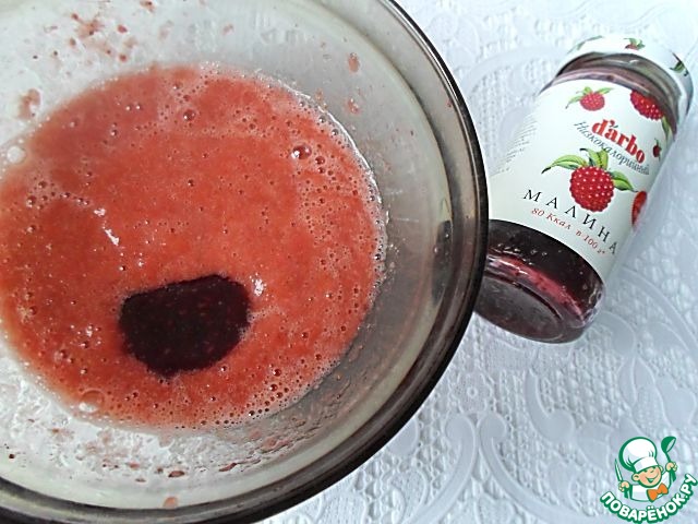 К клубничному пюре добавляем малиновый конфитюр D'arbo, перемешиваем. Ягодный соус готов.