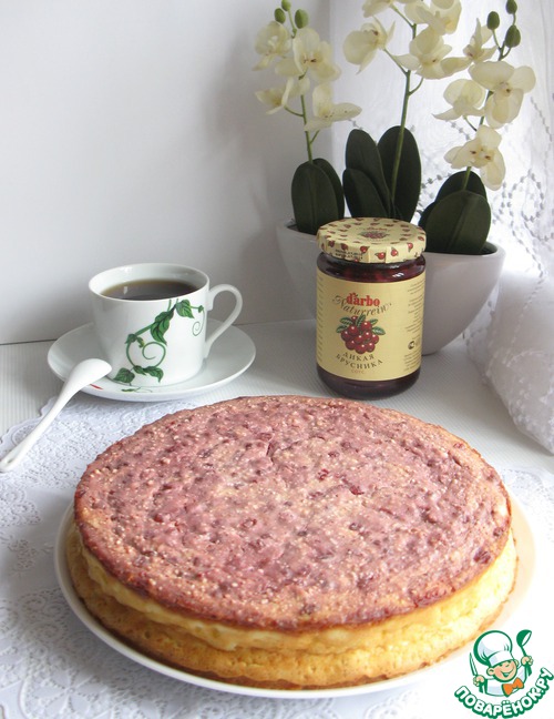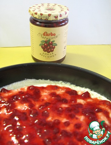 8. Сверху на творожную массу выложить брусничный соус (я использовала соус 'Дикая брусника' от ТМ "D’arbo").