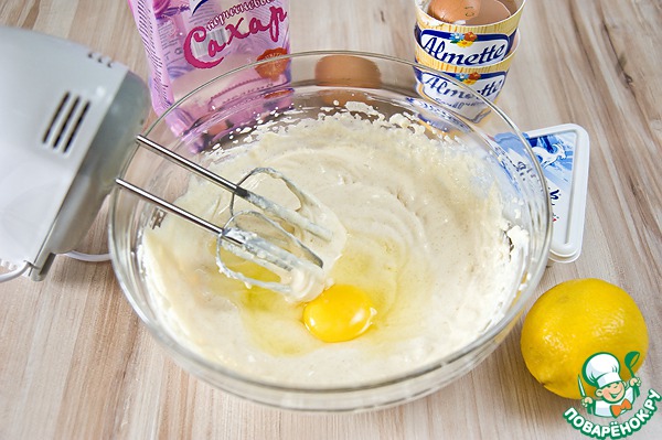 Добавить по одному яйцу, каждый раз хорошо перемешивая. Добавить лимонный сок.