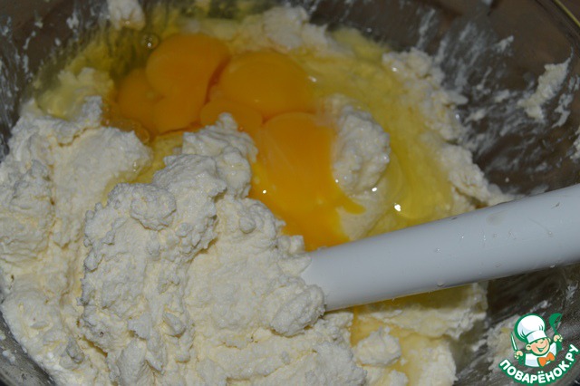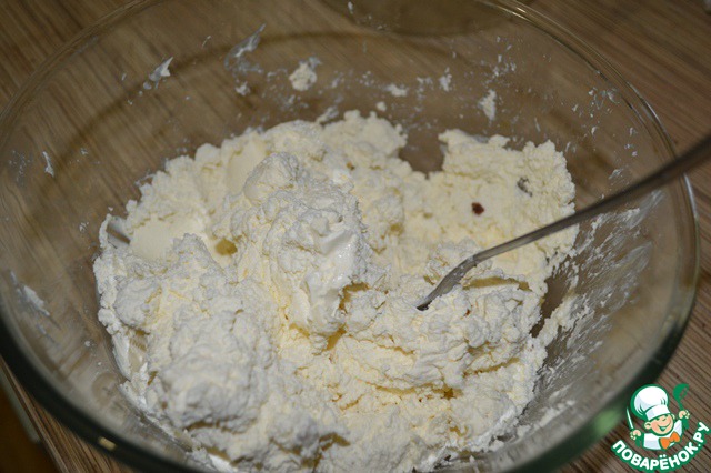 Готовим крем. Творожную массу и маскарпоне взбейте до однородного состояния. Но не долго.