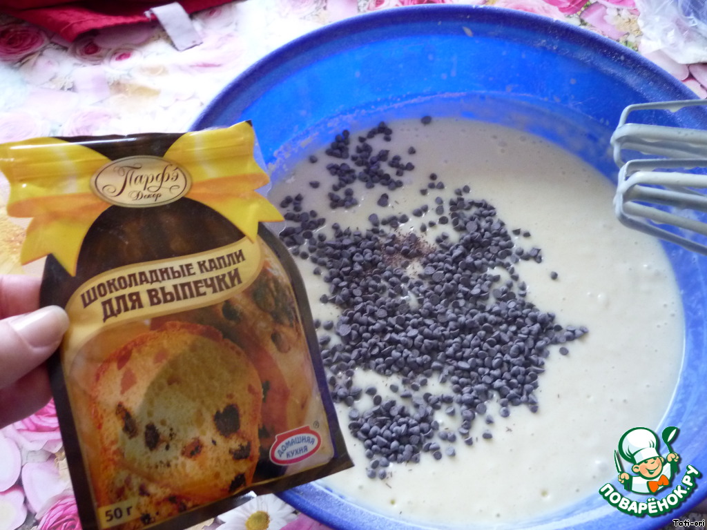 А вот и мое изменение - я в еще жидкое тесто добавила шоколадные капли для выпечки.