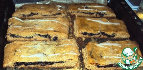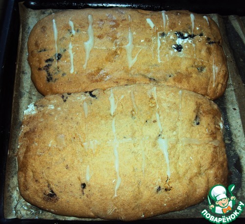 Горячие пряники слегка полила глазурью, так как у меня ее было немного. Не хотелось дополнительной сладости. Поставила на пару минут в духовку для застывания глазури.