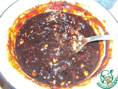 Стала бить орехи, привезенные от моей любимой бабушки. Предварительно целые орехи в скорлупе прокаливала в горячей духовке на небольшом огне. Можно очищенные слегка поджарить на сковородке, для придания пикантности начинке. Добавить орешки к начинке.