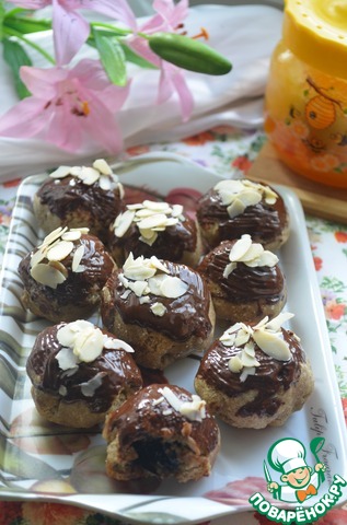 Покрыть растопленным шоколадом, украсить лепестками миндаля (измельченными орехами)