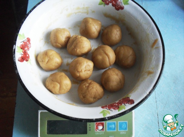 Достать тесто из холодильника, разделить его на кусочки весом около 30 г.
