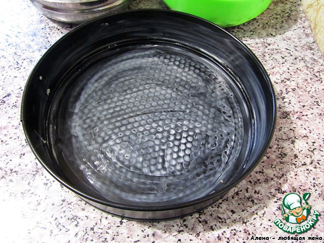 Теперь можно начинать сборку пирога. Разъемную форму смазать сливочным маслом