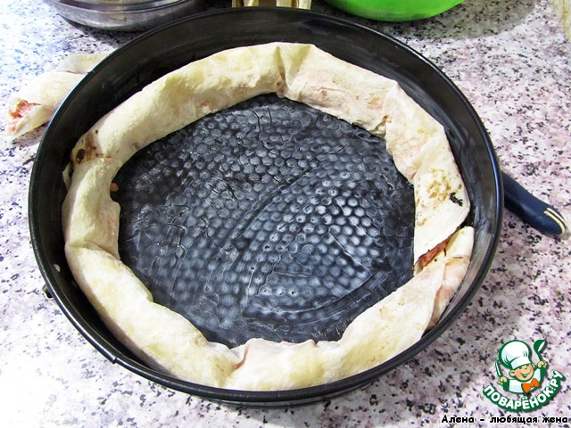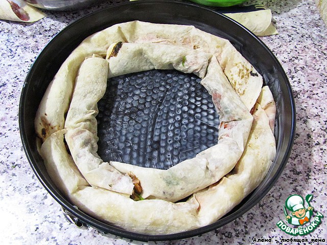 Далее, чередуя кольца с начинками, заполняем всю форму