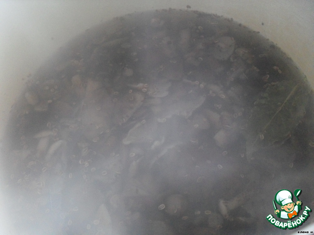 В кипящий маринад кладем вареные грибы, варим 40 минут.