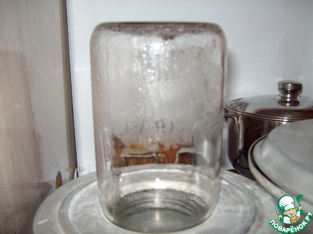 Во время третьей варки стерилизовать банки: 0,5 литр. - 10 минут, 1 литр. - 15 минут, 2 литр. - 20 минут.