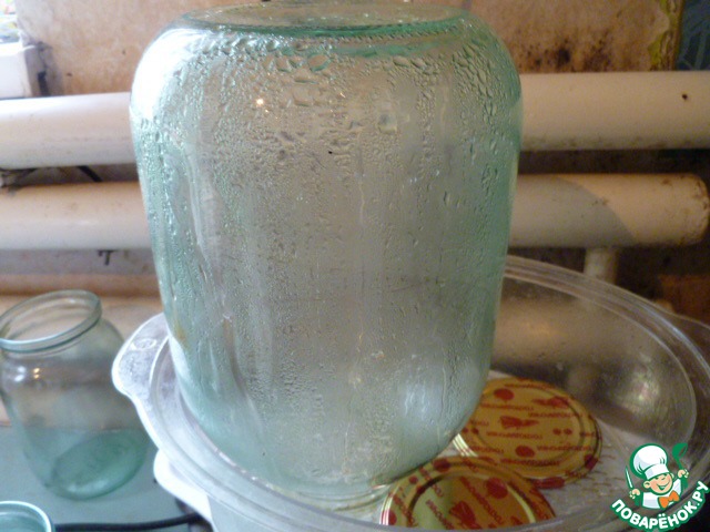 Перевернуть верх дном и оставить до полного остывания. Прошу прощения, но нет уже готового бутыля. Муж встает раньше и он просто сразу вынес в подвал.
