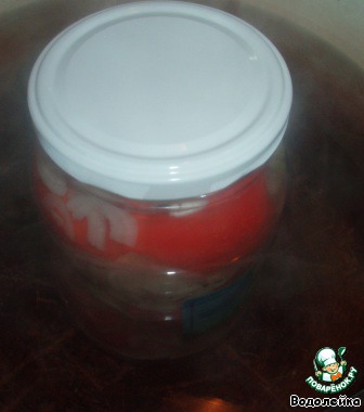 Заливаем помидоры и ставим стерилизоваться около 15-20 минут.