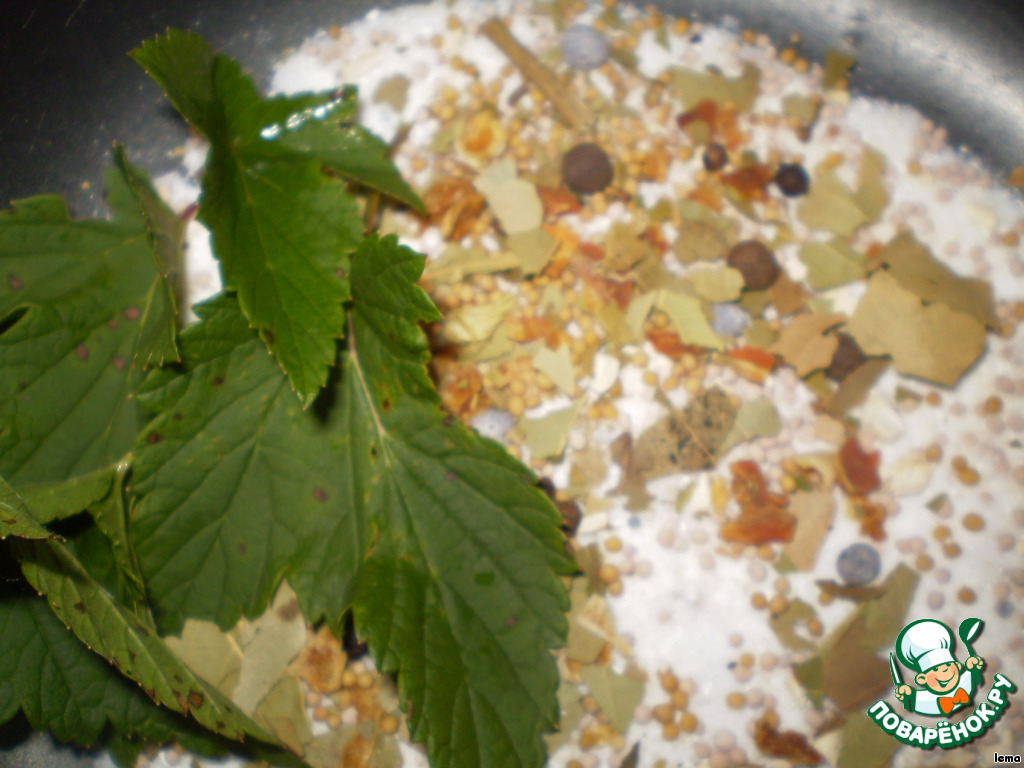 Сварить заливку - на 1,2 литра воды взять 2 ст.л соли, 1 ст.л. сахара - довести до кипения и добавить уксус.