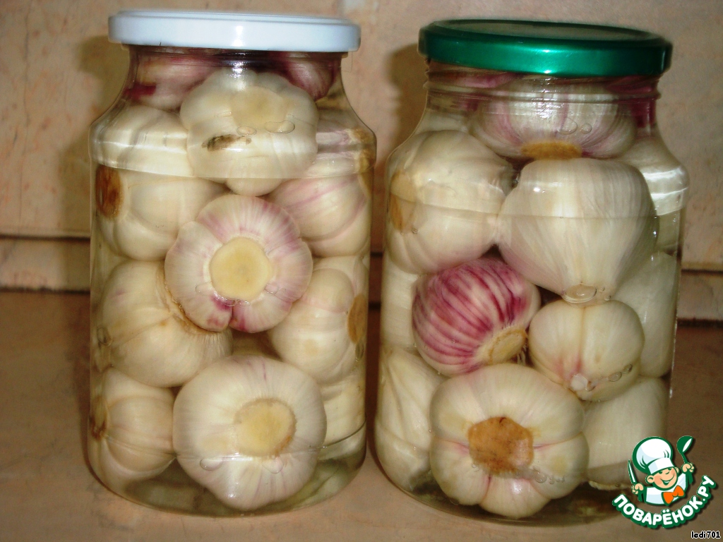 | Уже всюду появился молодой чесночок. И мы его очень любим в маринованном виде. Вот один из рецептов маринованного чеснока головками. |