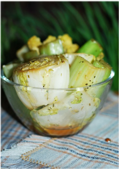 Для приготовления маринованных овощей к шашлыку можно брать капусту белокочанную, пекинскую капусту, черешковый сельдерей, редис.