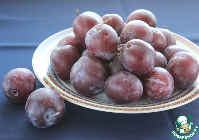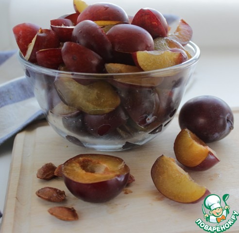 Сливу вымыть, разрезать на половинки или на четвертинки, косточки удалить.