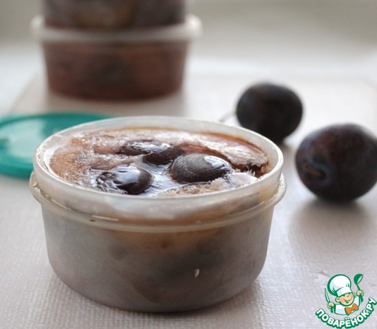 Захотелось свежего компота, морса, достаем замороженную в сиропе сливу и всё что нужно сделать, просто добавить воды.