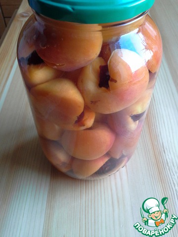 Банки простерилизовать (я обычно мою и наливаю 1/3 горячей воды и на 3-5 минут в микроволновку на полной мощности. Пользуюсь этим методом несколько лет, банки не в холодильнике стоят прекрасно) Плотно уложить абрикосы с начинкой и залить кипятком из чайника, прикрыть ошпаренной крышкой и оставить минут на 15-20.