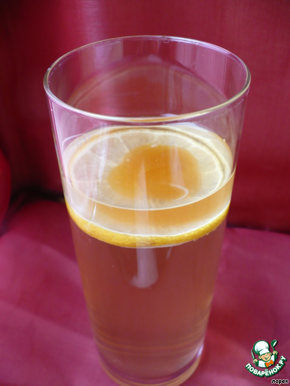 В рецепте сказано, что отвар по истечении 10 минут варки надо слить. Не надо! Разбавьте водой по вкусу, добавьте мед, лимон и получится отличный согревающий лечебный имбирный чай. Вот такой. Самое то в такую непогоду.