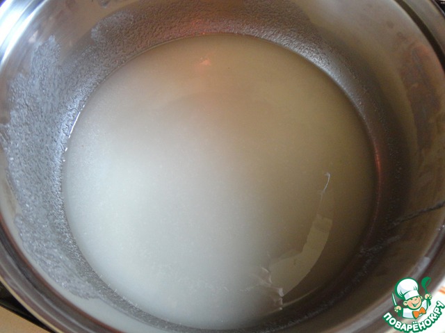 В кастрюлю высыпаем сахар, добавляем воду. Ставим на огонь, перемешиваем, даем закипеть.