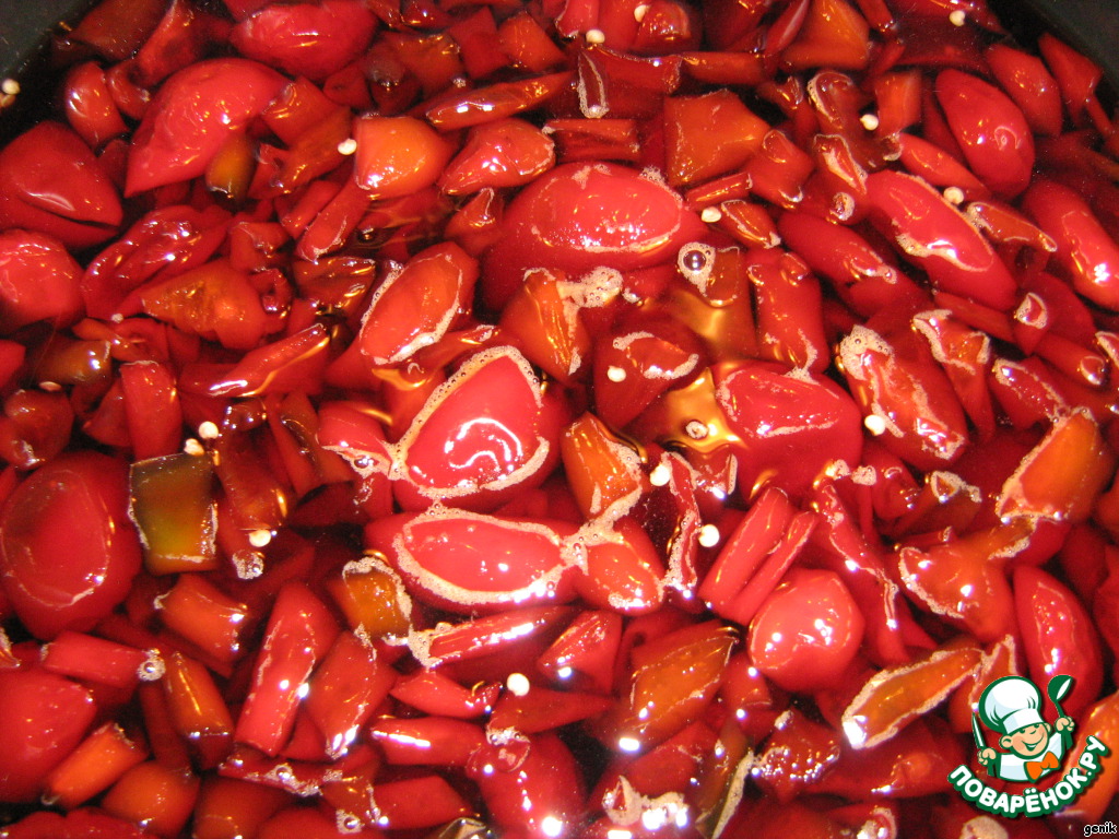 | Моя коллега принесла на работу баночку варенья. Я не люблю сладкое, но из вежливости поинтересовалась, из чего оно сделано? Ответ меня озадачил.... острый и болгарский перец. - И с чем его едят??? - был мой следующий вопрос... - С сыром, или просто на сухарики намазывают. Я люблю все острое и все необычное... В голове у меня пронеслась мысль, вспомнились слова Высоцкого: «Я, Вань, такую же хочу!». И я попросила рецепт этого замечательного, необычного острого варенья. Варенье я назвала именем коллеги. |