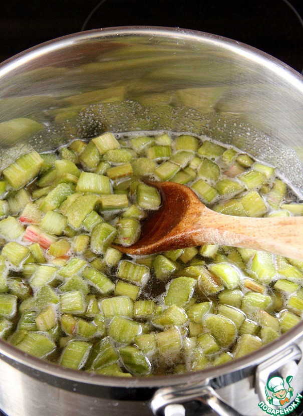 И затем добавить ее к ревеню. Варить 20 мин. За пару минут до конца варки добавить сок одного лимона.