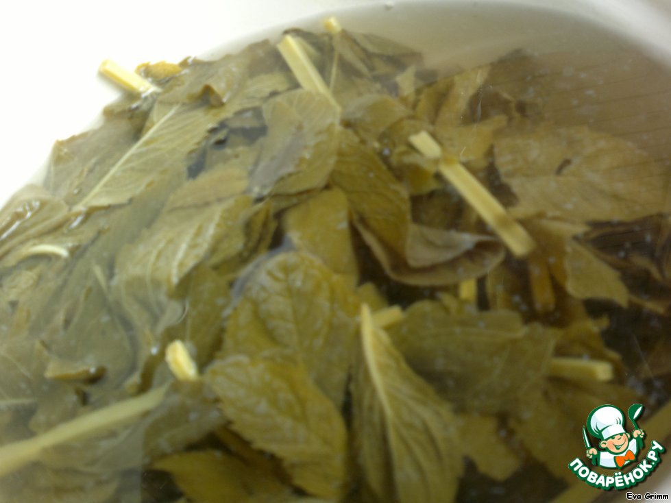 С вечера готовим отвар мяты... Веточки нарезать и залить кипятком, добавить столовую ложку лимонного сока и залить стаканом кипятка, кипятить 10 минут, снять, оставить на ночь.