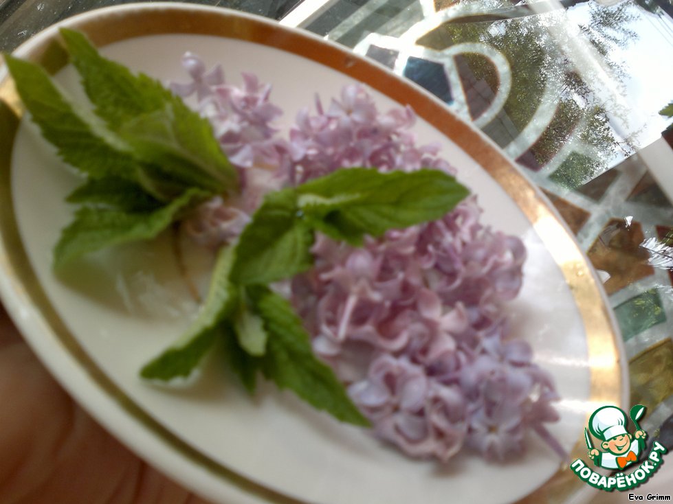 Немного цветов сирени и несколько листиков мяты приготовим для добавления в сироп. Мяту я мелко порубила, цветочки отделила от ветки.