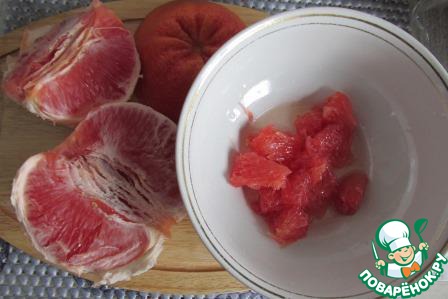 Грейпфруты вымыть, обсушить, очистить, разобрать на дольки и извлечь мякоть, выбирая косточки.