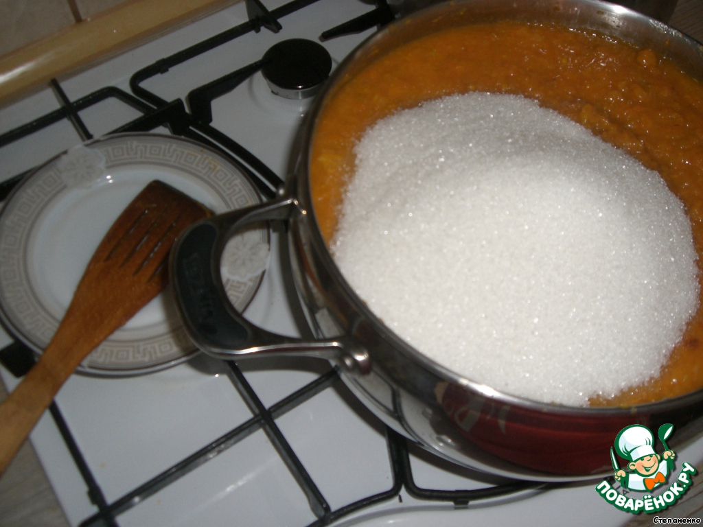 На 5 кг абрикос я использую 2 кг сахара, но для получения более сладкой и густой массы можно использовать 3 - 3,5 кг сахара. Выход варенья составляет 5 литров.