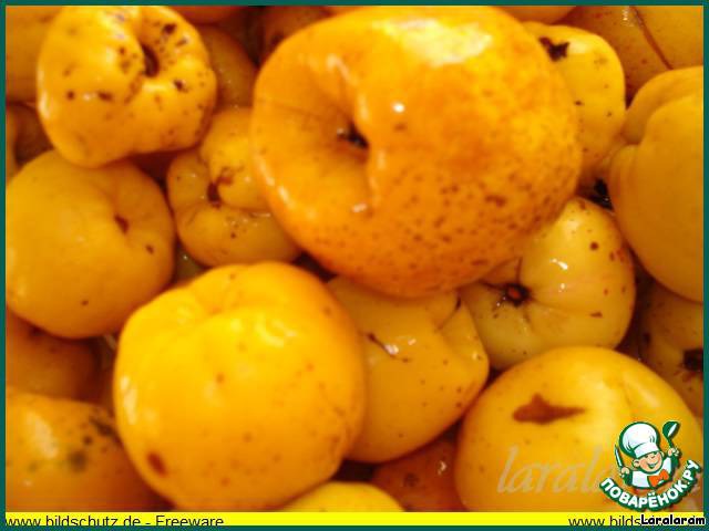 | Вот до чего я дошла на чужбине: всe реже и реже прибегаю к услугам торговли: что можно, отбираю у природы - шиповник, тeрн, черемшу и... в общем, смотрят на меня как на полоумную, когда я обираю кустарники и деревья в округе... люди-то здесь в основном питаются полуфабрикатами и Маковскими котлетками... А мы не ищем простых решений, не боимся трудностей - нормальные герои всегда идут в обход… Этот раз обнаружила рядом с домом заросли дикой айвы - ура-а-а! Как раз она созрела, чуток времени, и прощай урожай. Набрала (главное, выработать здоровый пофигизм и на вопрос: а что? это можно использовать? - чтоб не очень стыдно было, ответить: да, для поделок... ), принесла домой, прочитала информацию о ней - и поняла, как это здорово: даром, да ещe и полезнее культурной. А надо сказать, айвовое желе в Германии имеет культовый статус - попробуйте: к вину и сыру неповторимо! Кроме того, я не "десертная" душа, для меня это самое то, самый лучший десерт... ну, сыр... а вы что подумали? вино, да? |