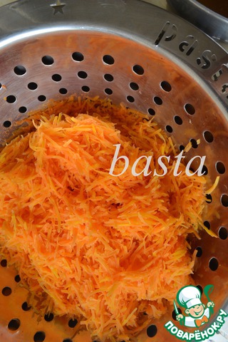 В дальнейшем перекинуть морковь на дуршлаг и оставить на некоторое время, чтобы стекла вся лишняя жидкость.